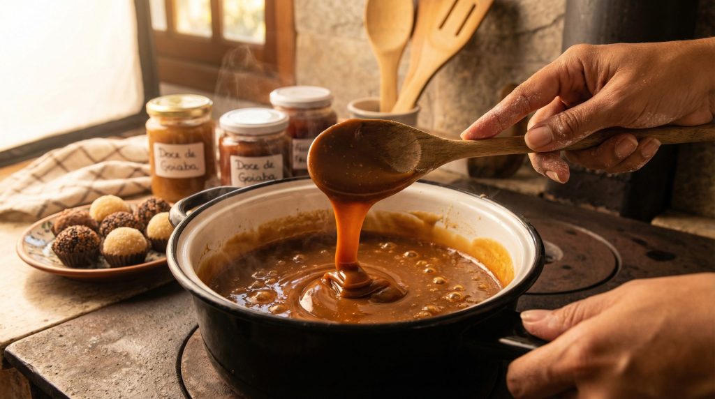 Acertar esse ponto garante que o doce não fermente com o tempo e tenha a textura correta na boca.
